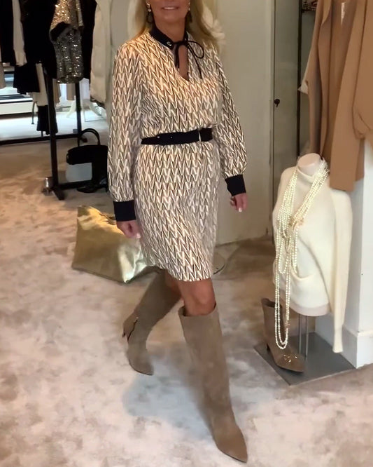 Elegant langermet kjole med geometrisk trykk