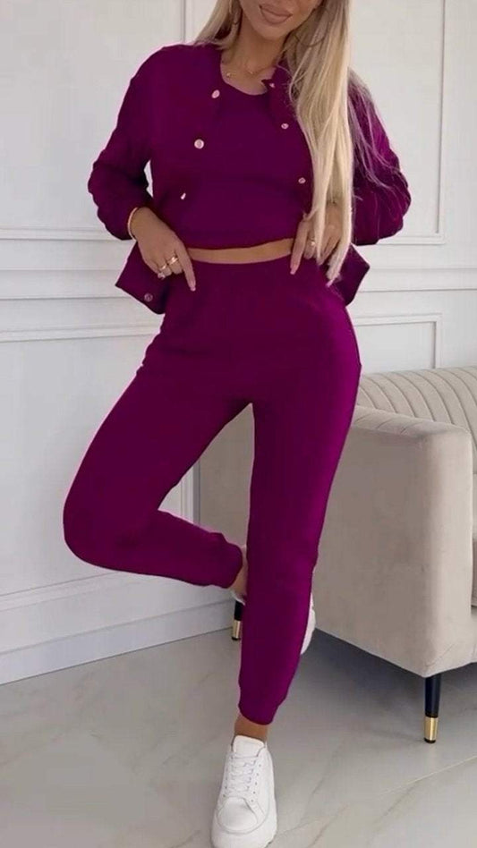 Kvinners rundhals Langermet Casual Sports 3-delt dress