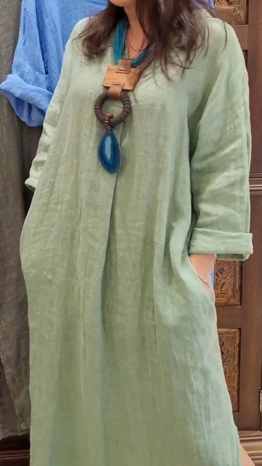 Kvinners uformelle kjole i solid bomull og lin