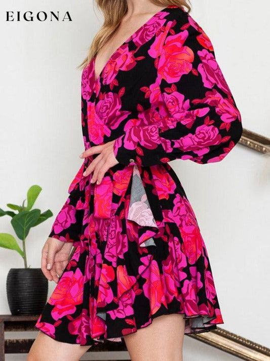 Blomstertrykk Surplice Neck Langermet Kjole