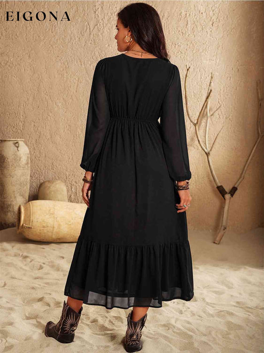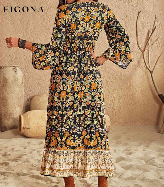 Floral Button Up V-hals lagdelt uformelt langermet maxikjole