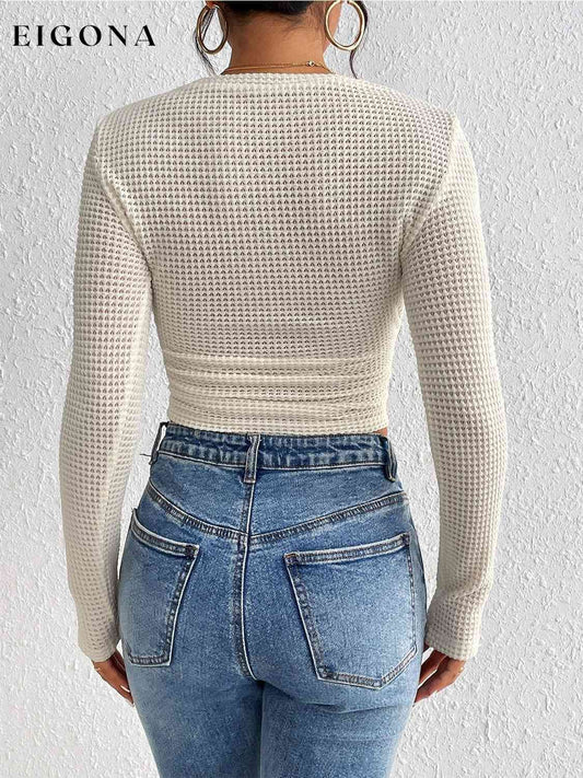 Ribbet Ruffled Rund Hals Langermet Knit-Top