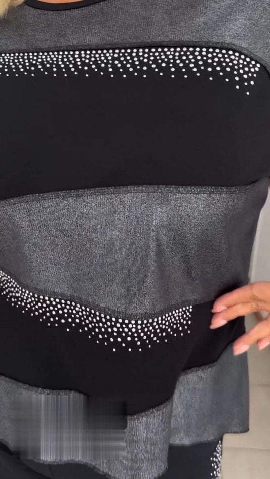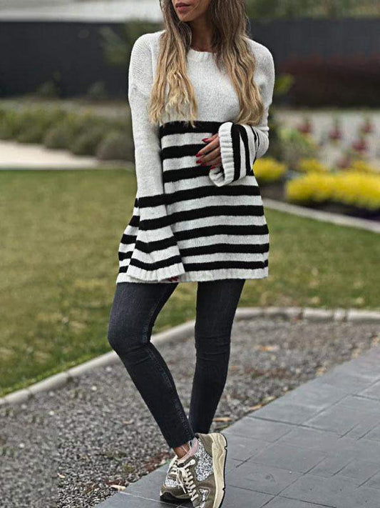 Stripete patchwork uregelmessig lange ermer for kvinner