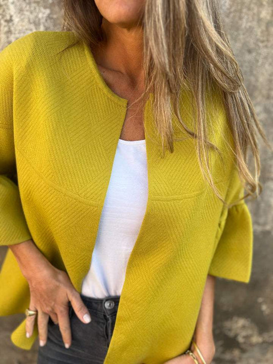 Lapel Langermet Casual Lang Cardigan for kvinner