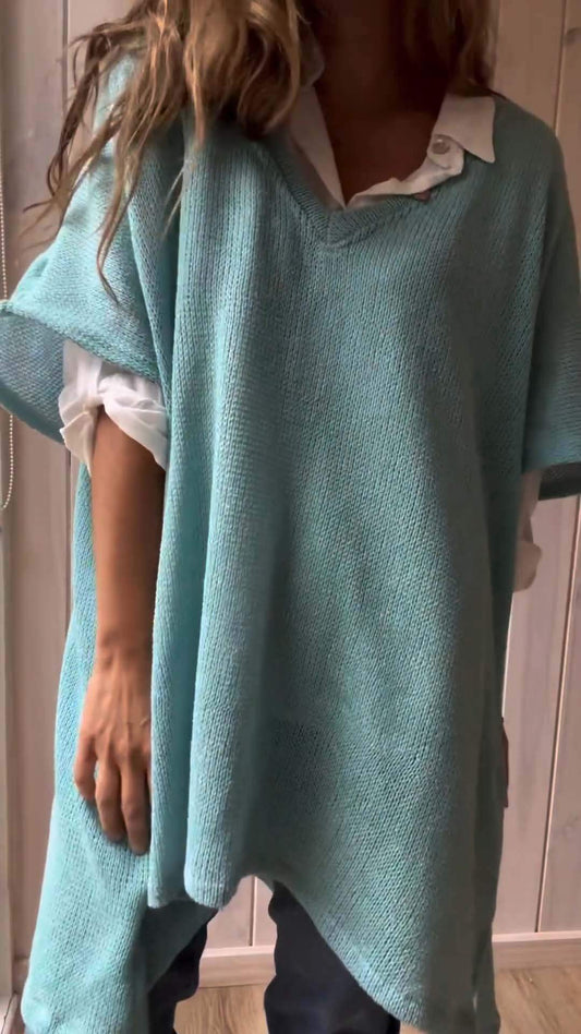 Ensfarget strikket lappeteppe stripete uregelmessige lange ermer for kvinner