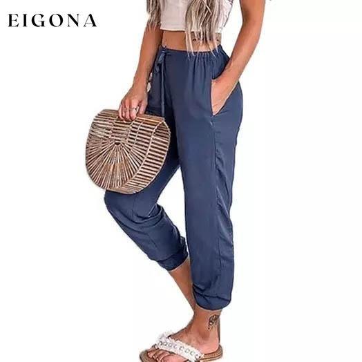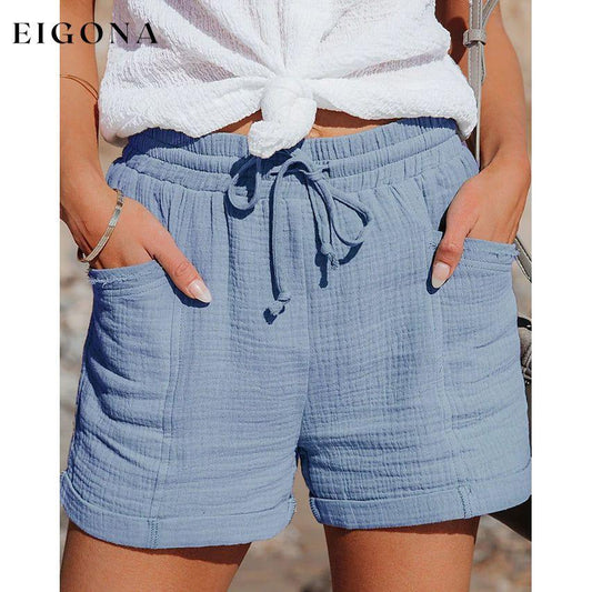 Kvinners uformelle snøring med elastisk midje sommershorts med lommer