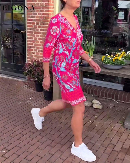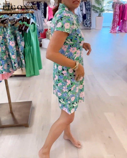 Kortermet midikjole i jakkeslag med blomstertrykk