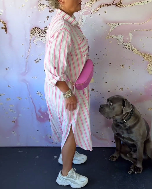 Uformell kortermet kjole i jakkeslag med vertikale striper