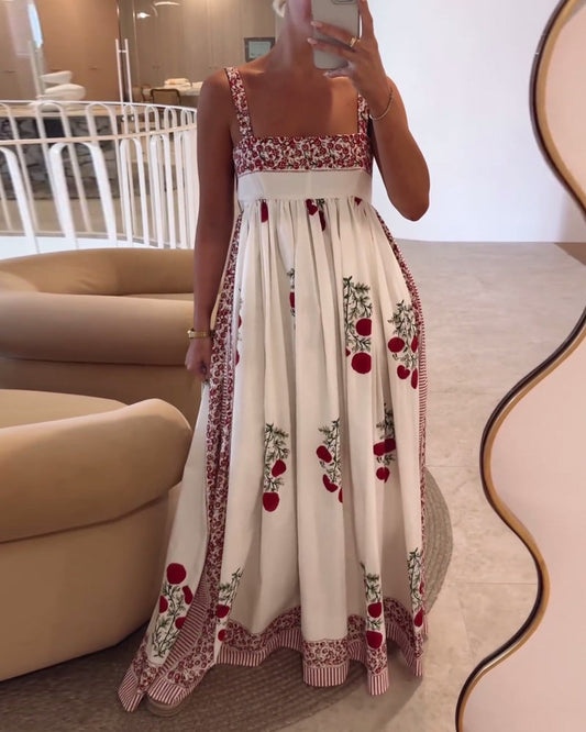 Fasjonabel ermeløs kjole med V-hals med kontrasttrykk
