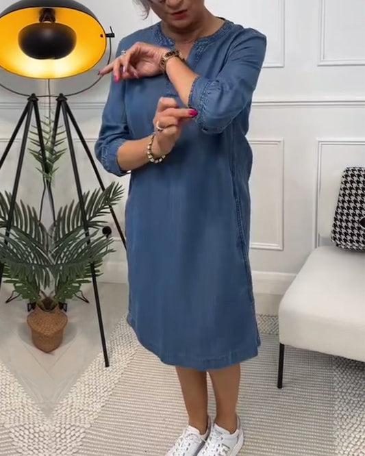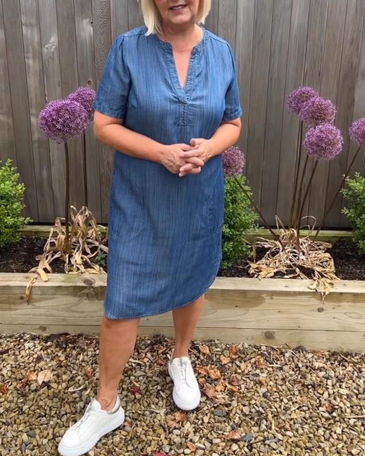 V-hals solid denimkjole