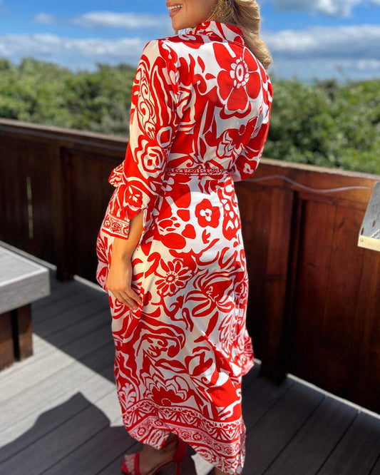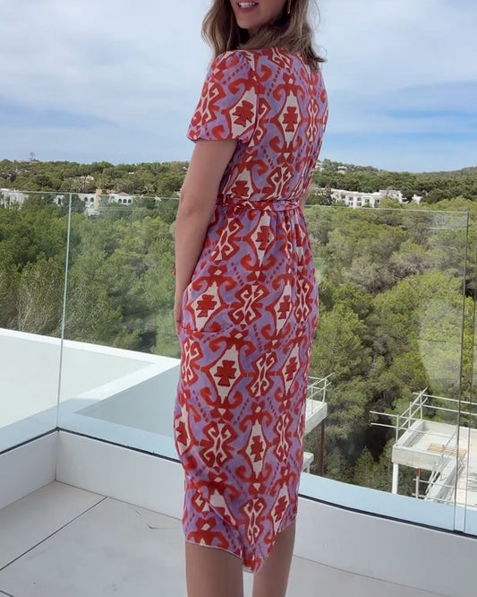 Uformell trykt V-hals beltekjole med lyktermer