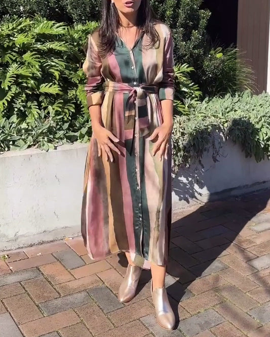 Casual kjole med jakkeslag og striper