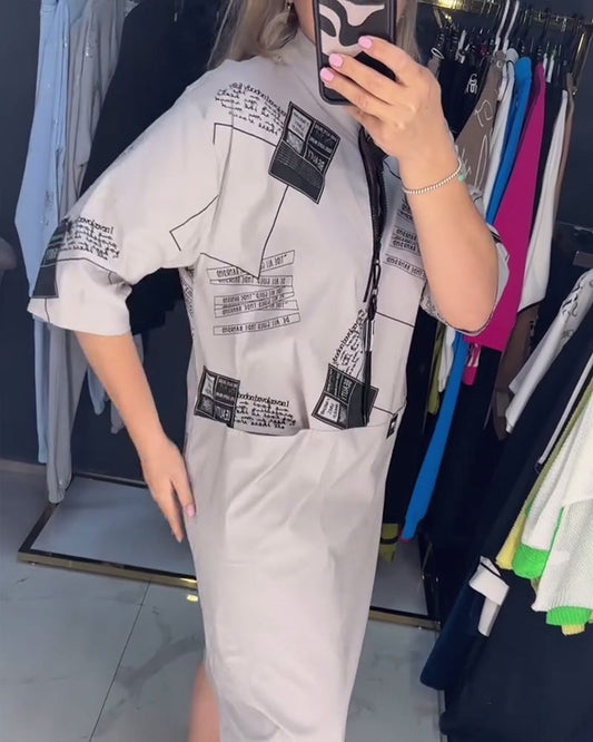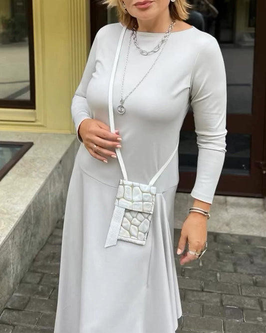 Uformell ensfarget kjole med glidelåslomme med rund hals