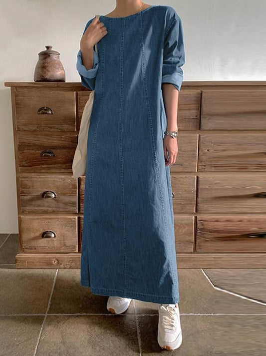 Women's Cotton Lapel Long Sleeve Long Shirt Dress