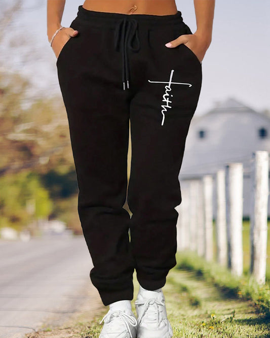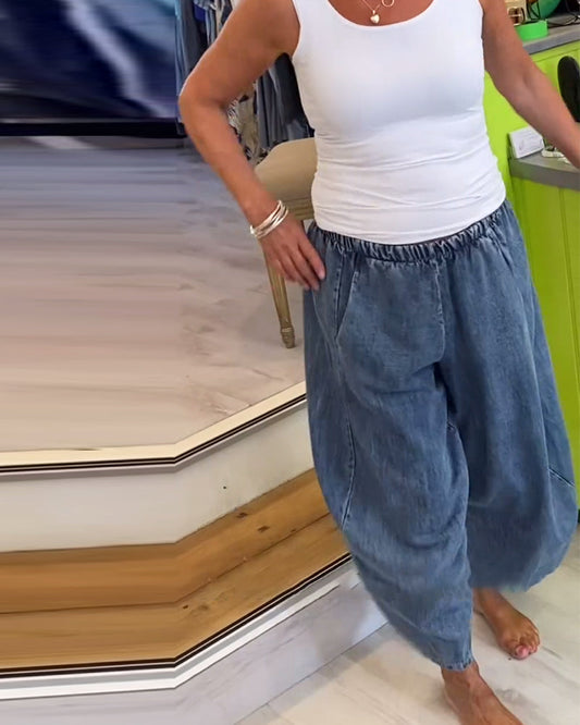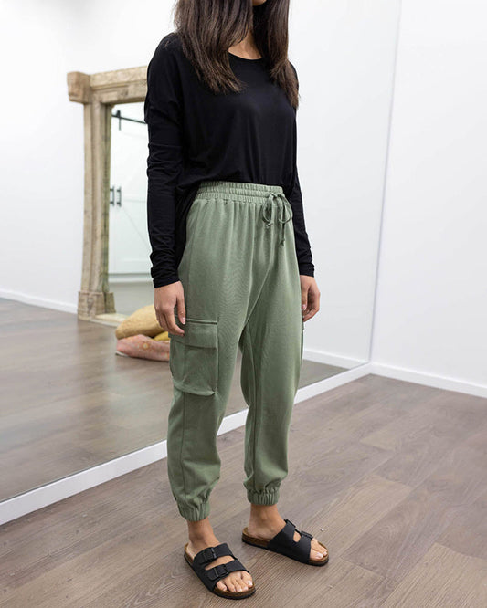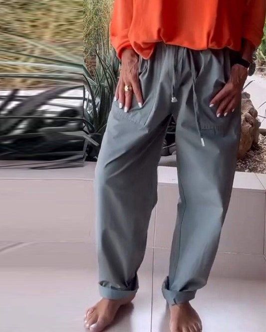 Ensfargede fritidsbukser med elastisk midje og snøring