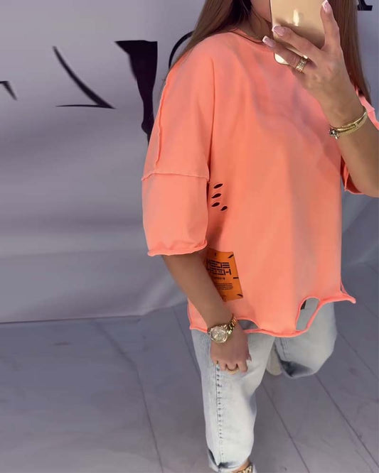 V-Neck Rolled-Hem Short-Sleeved Loose T-Shirt