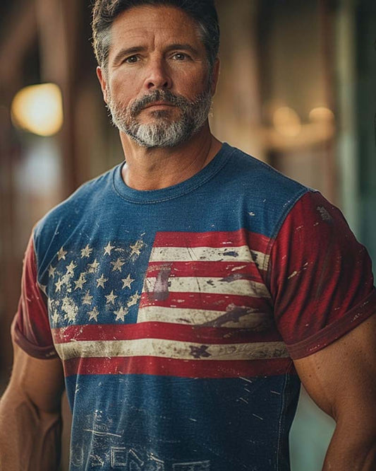 Men's Vintage American Flag Declaration of Independence Print T-Shirt