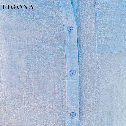 Dame ensfarget Langermet knapp Stående Krage Basic Topper