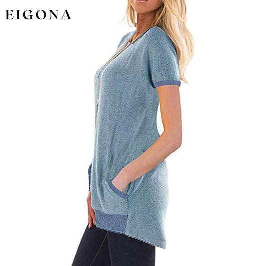 Dame uformelle lange ermer solid V-hals tunikaer skjorte topper med lommer