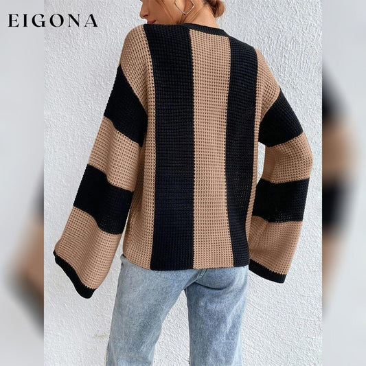 Dame-genser Ribbestrikket Patchwork-stripete genser