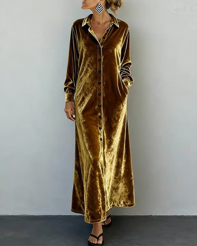 Solid Color Collared Velvet Shirt Dress