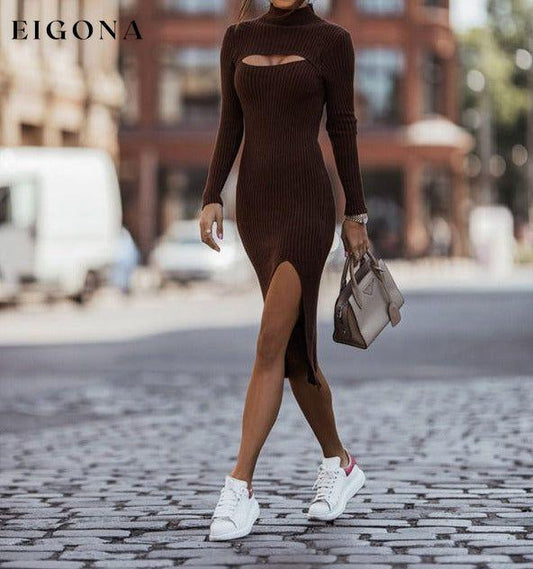 Slim fit strikket hule splittkjole for kvinner