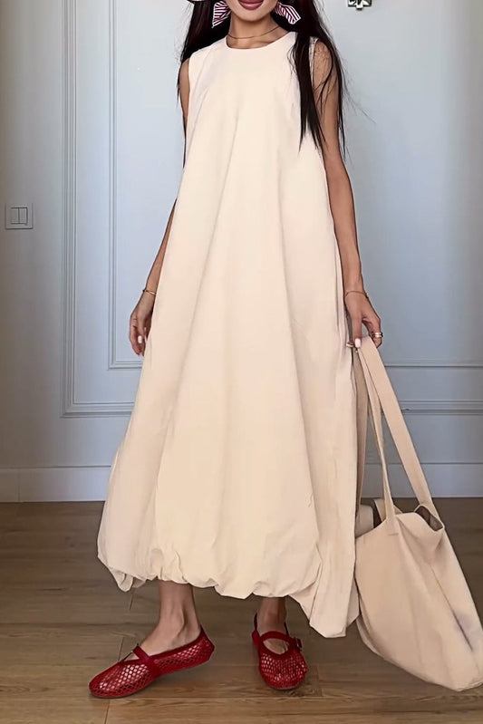 Ermeløs ensfarget maxikjole med åpen rygg for kvinner