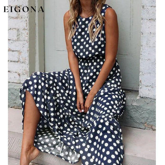 Ermeløs polkaprikket lang kjole for kvinner