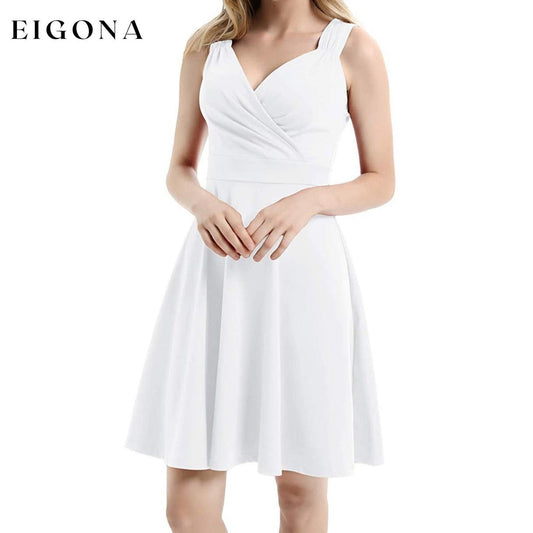 Ermeløs ensfarget minikjole med V-hals for kvinner