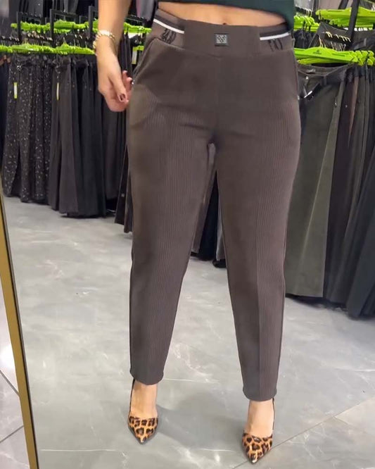 Fasjonable ensfarget lomme med uregelmessige patchworkbukser