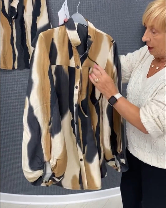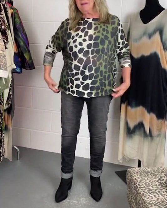 Stilig topp med lange ermer med rund hals i leopardmønster