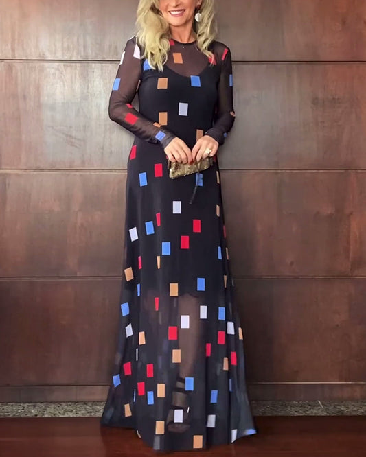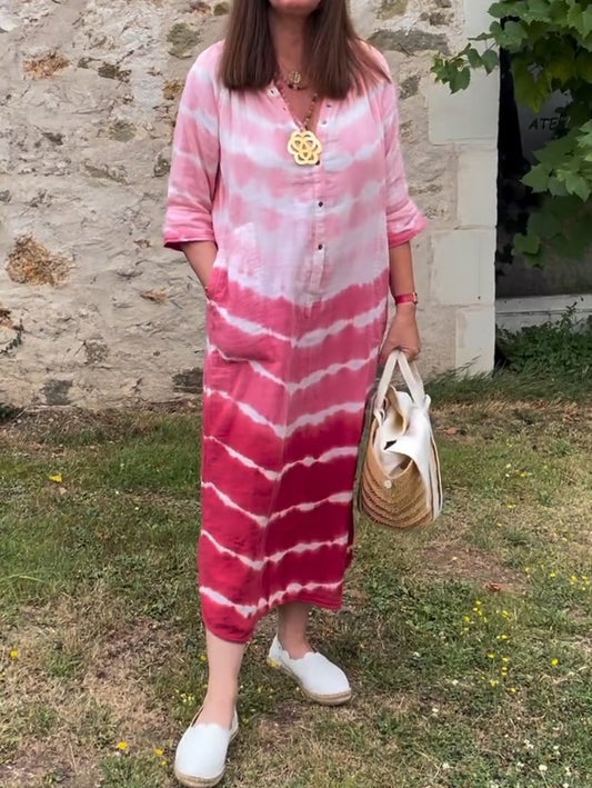 Kvinners Casual Gradient Tie Dye Print Langermet Kjole