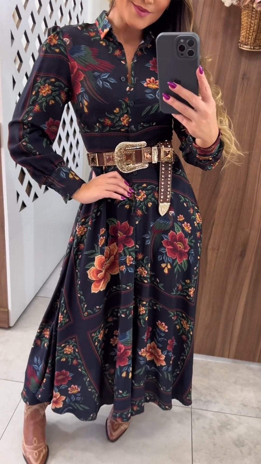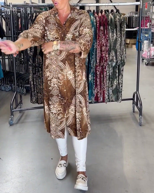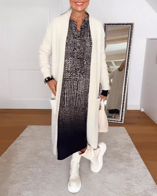 Langermet jakkeslag for kvinner, fritidskjole med retrotrykk