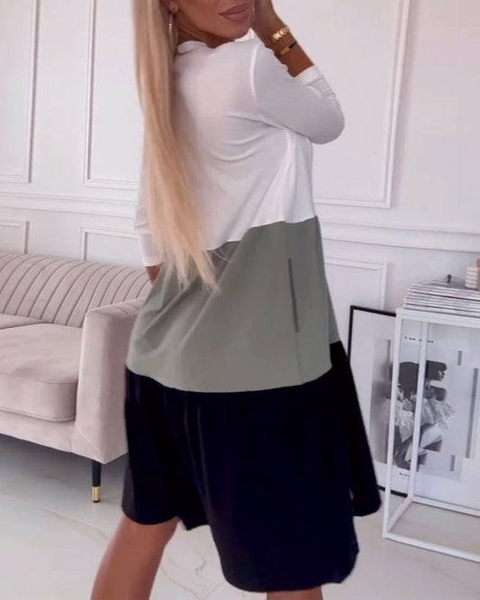Kvinners rundhals langermet falsk todelt sideglidelås uformell dress