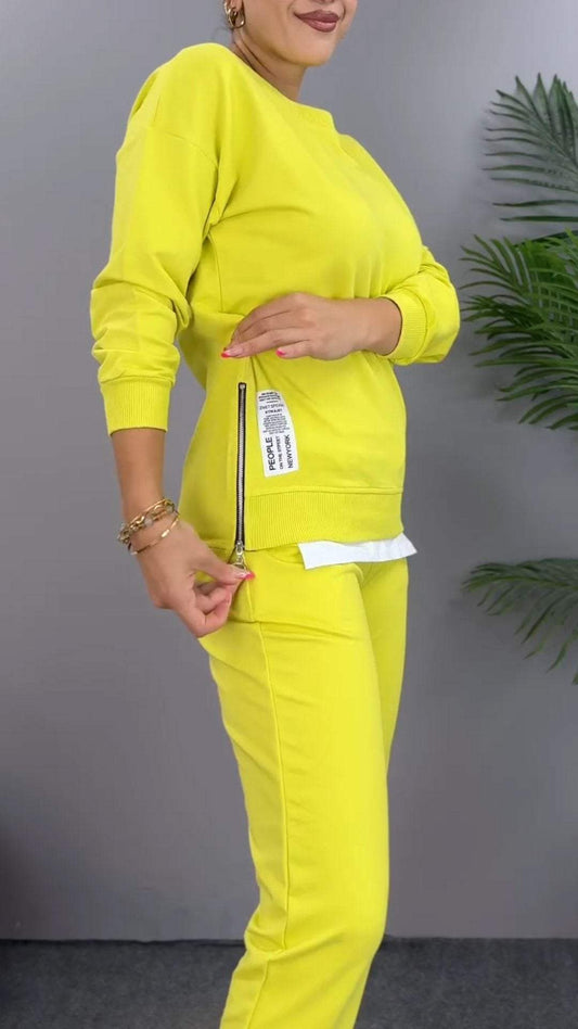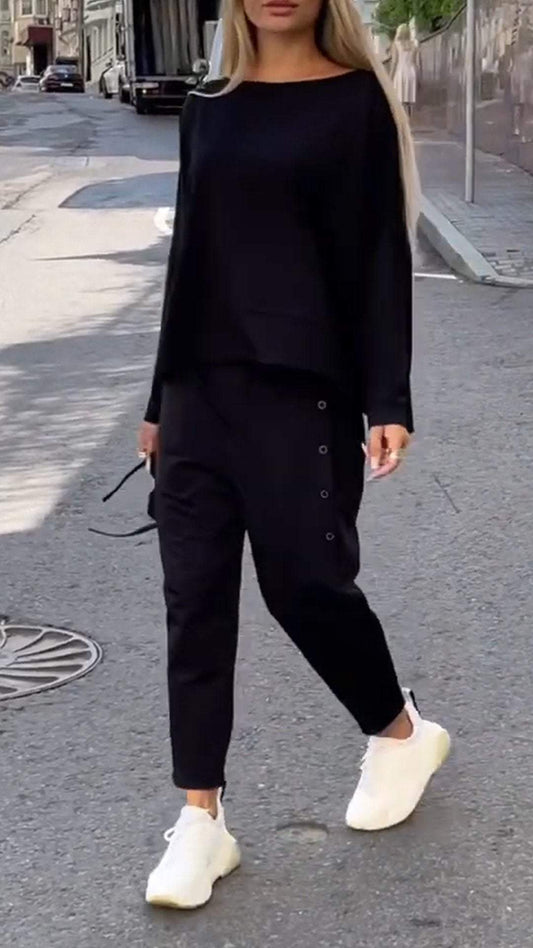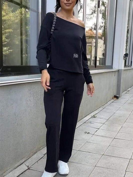Kvinners uformelle skråkrage ensfarget langermet høstdress i to deler