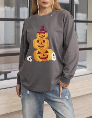 Kvinners rundhals langermet Halloween Print Casual Topp