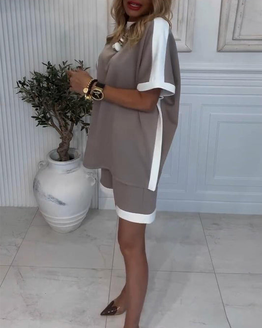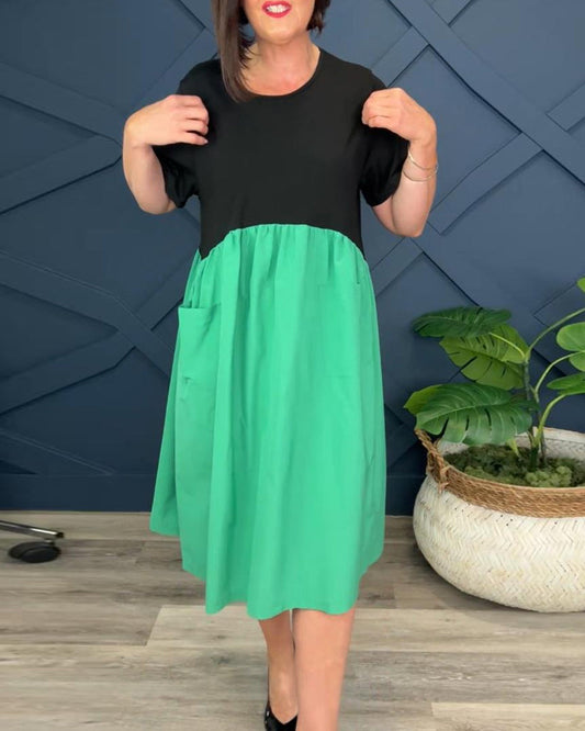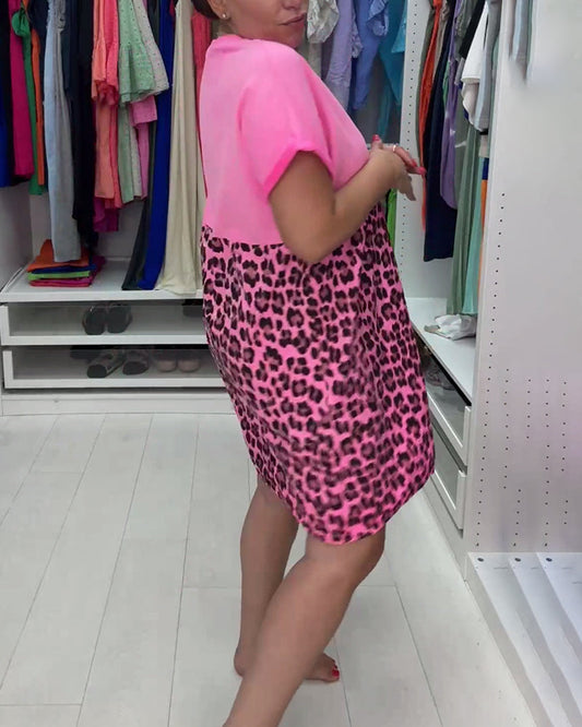 Uformell, løs kjole med leopardtrykk i kontrastfarge