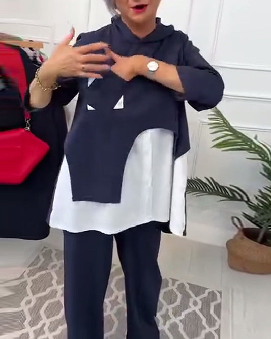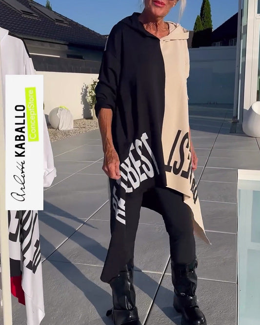 Uregelmessig hettegenser med lappeteppe i uregelmessig kontrastfarge