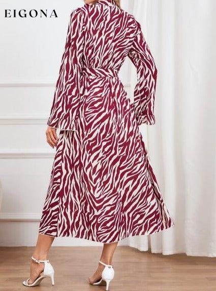 Animal Print Tie Front Ruffle Trim Langermet Casual Maxi Midi-kjole