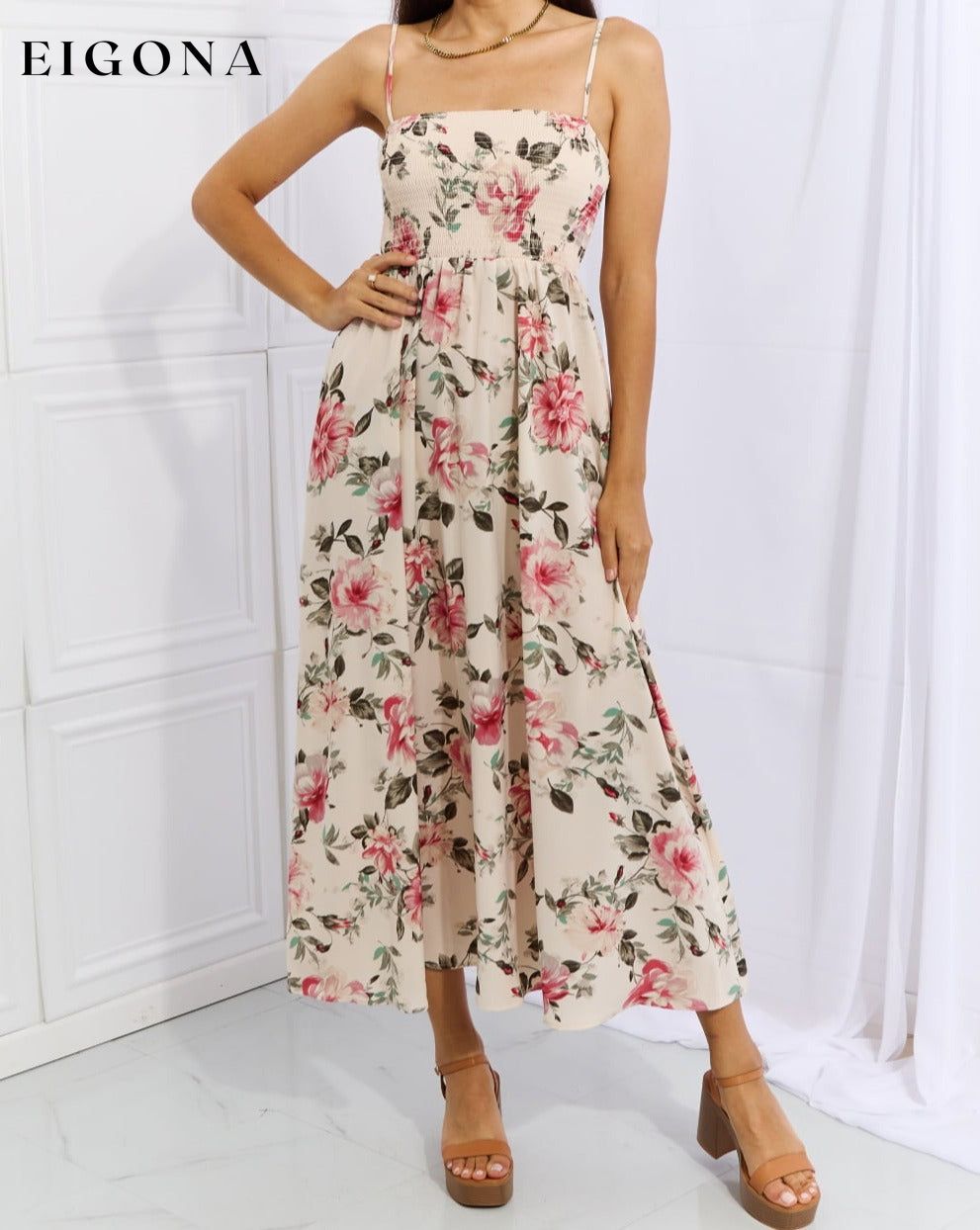 Denne fantastiske kjolen er designet for å snu hodet og få deg til å føle deg som en visjon om nåde og femininitet. Denne kjolen har et ermeløst design som gir bevegelsesfrihet og viser skuldrene dine med eleganse. Maxi-lengden gir et snev av raffinement, og skaper en grasiøs silhuett som smigrer alle kroppstyper. Det som skiller seg ut med denne kjolen er det fortryllende blomstertrykket som pryder stoffet. Delikate blomster i livlige fargetoner skaper en følelse av innfall og romantikk, noe som gjør den perfekt for både formelle anledninger og uformelle utflukter. Trykket er nøye plassert for å fremheve dine naturlige kurver og fremheve din feminine sjarm. Stoffet er lett og pustende, noe som sikrer at du holder deg kjølig og komfortabel selv i varmere vær. Kjolen har også et glatt fôr som føles mykt mot huden din, slik at du kan bruke den med letthet og selvtillit. Allsidighet er et annet viktig aspekt ved denne kjolen. Den kan kles opp eller ned for å passe enhver anledning. Kombiner den med hæler og statement-tilbehør for en glamorøs kveldslook, eller kle den ned med sandaler og en floppy lue for et elegant ensemble på dagtid.
