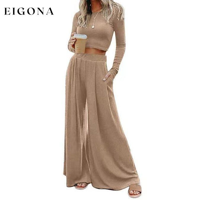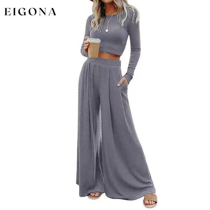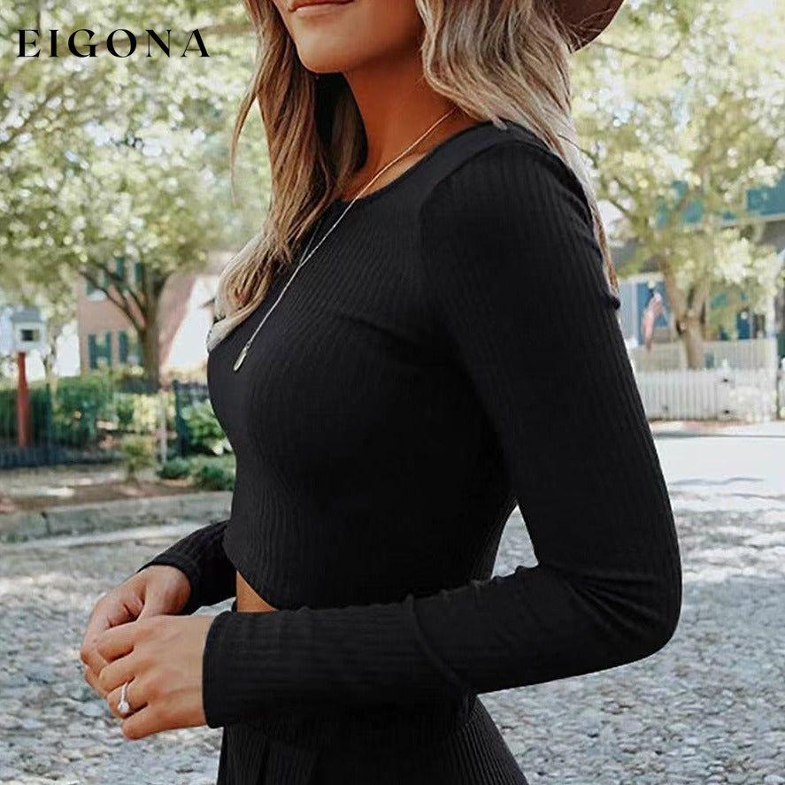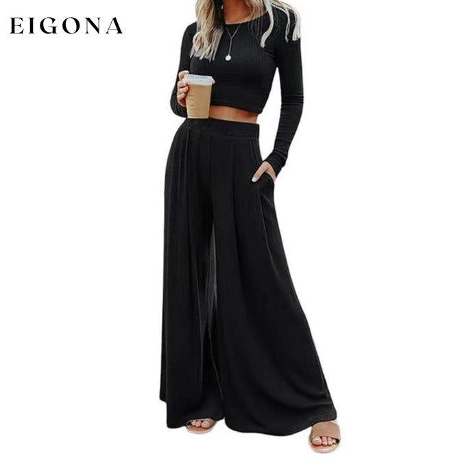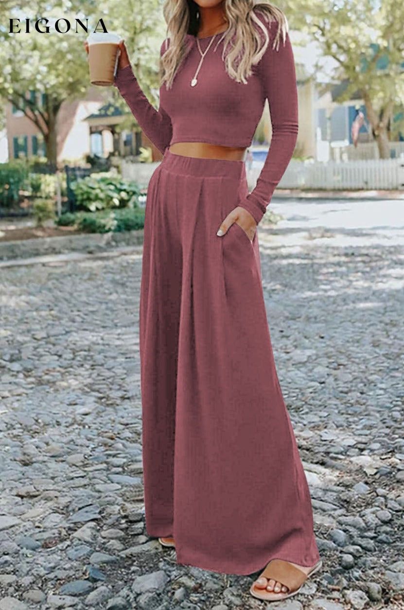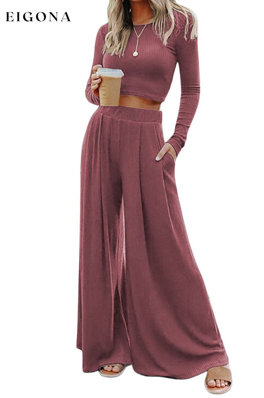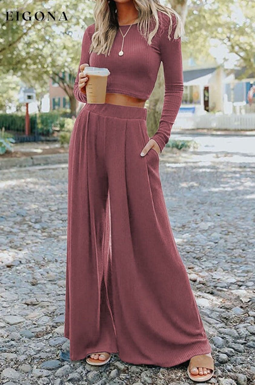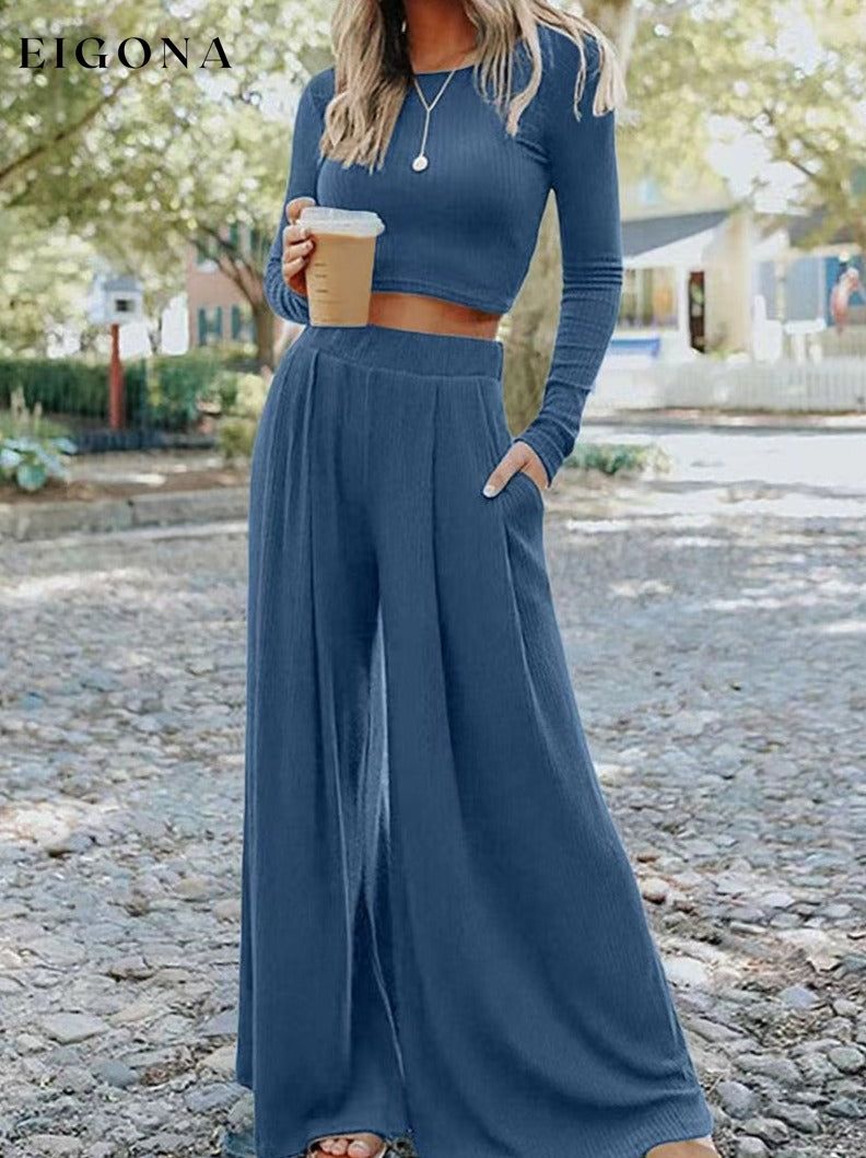 Ensfarget Ribbed Crop Top Langbuksesett