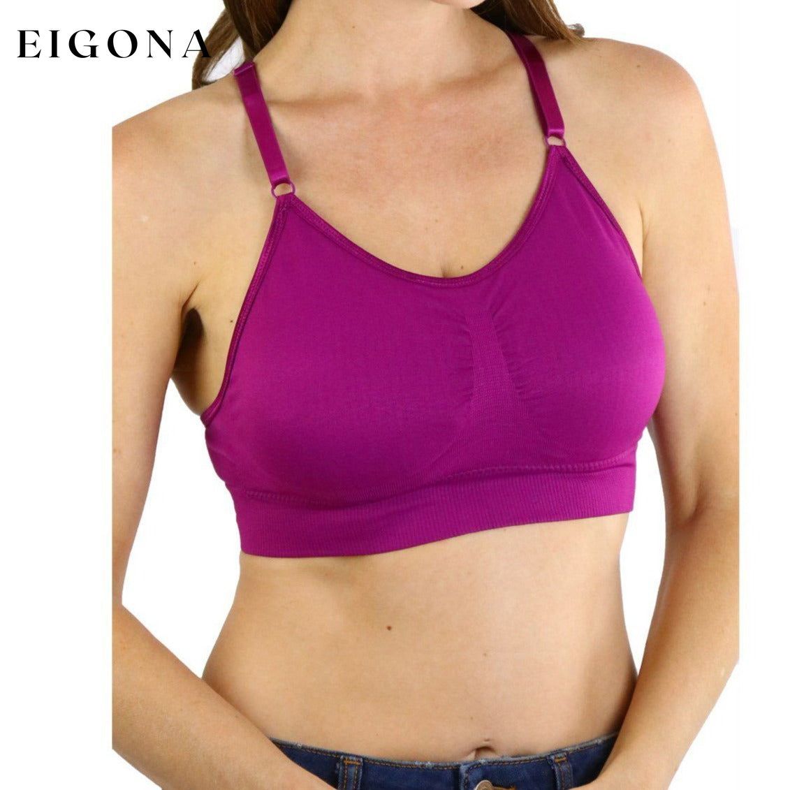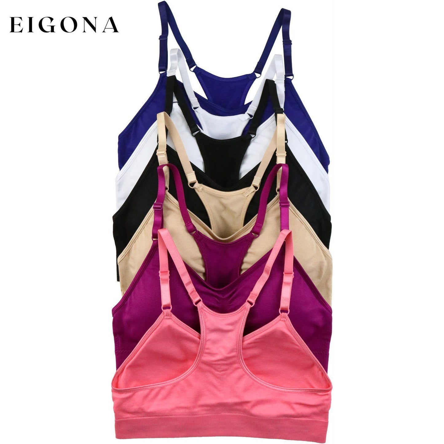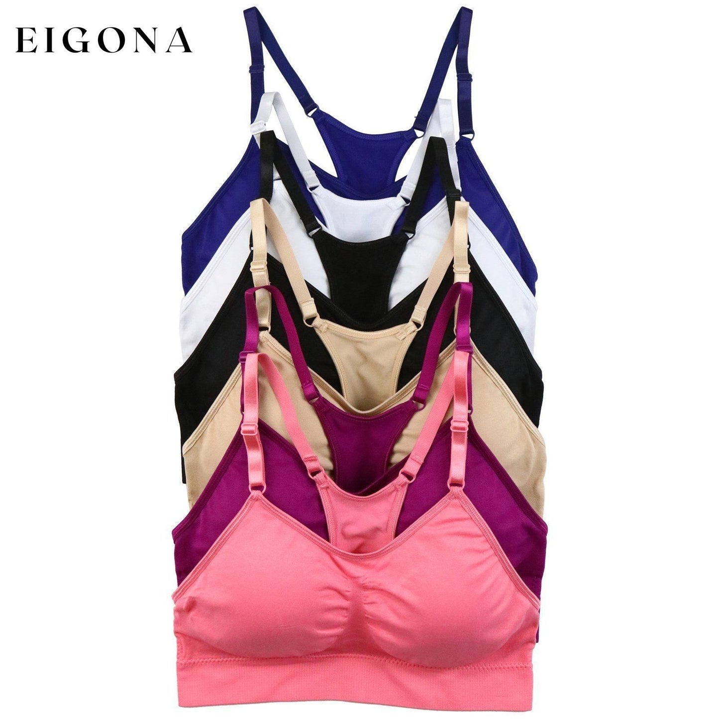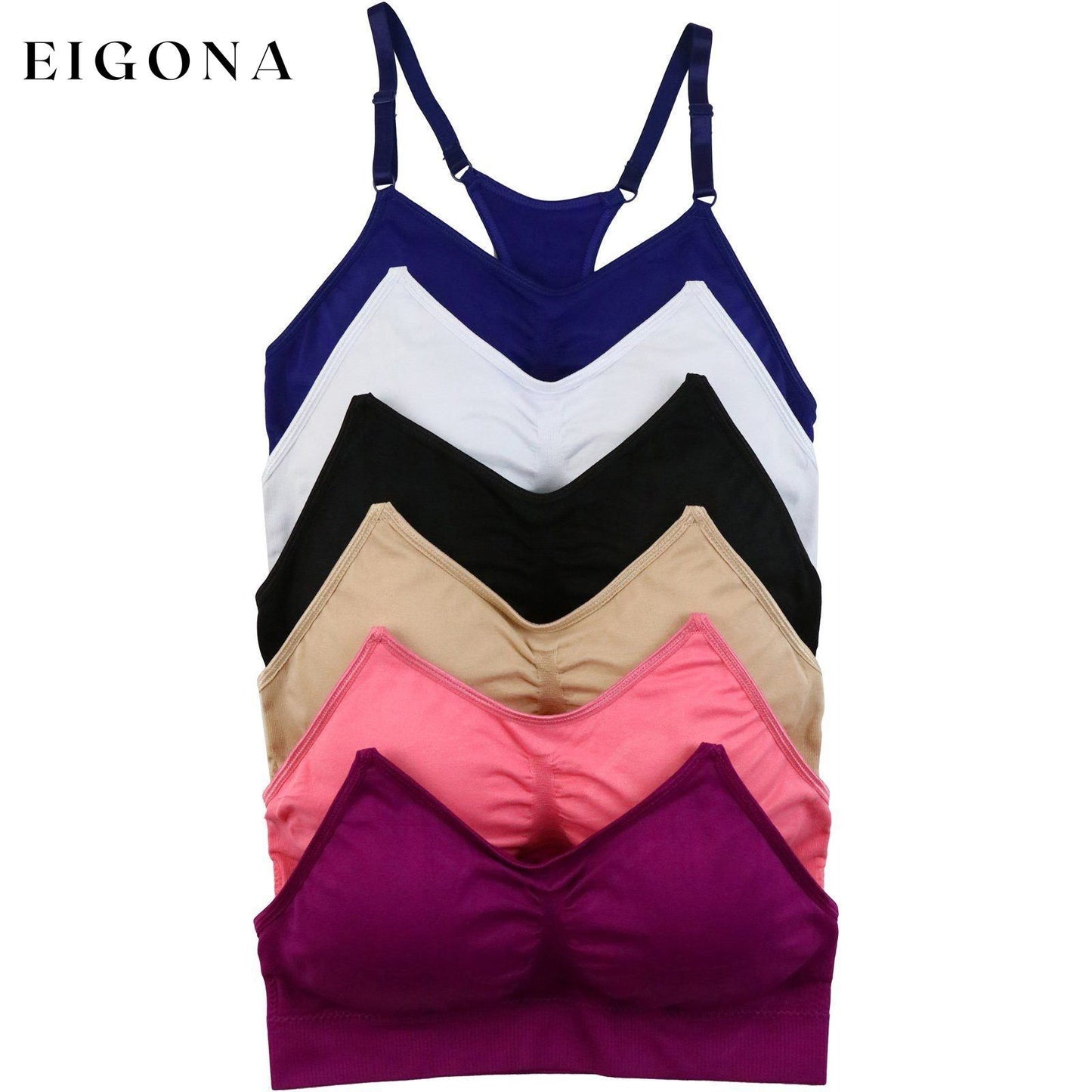 These seamless bralettes feature a rib-knit design, spaghetti straps, and a wide underbust band for a better fit. The double-layer front comes with optional removable cups for better coverage. The ultra stretchy material and seamless construction provide maximum comfort. Available in a 6-pack value bundle of 6 different colors. Matching panties sold separately.