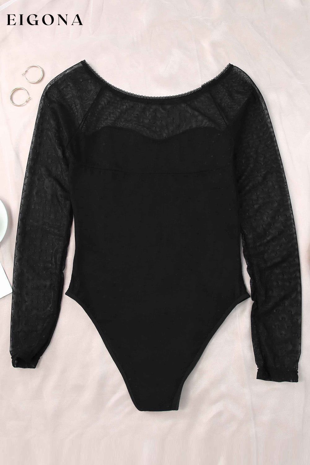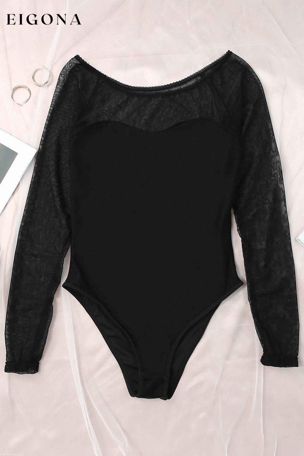 Black Dotty Mesh Overlay Long Sleeve Bodysuit
