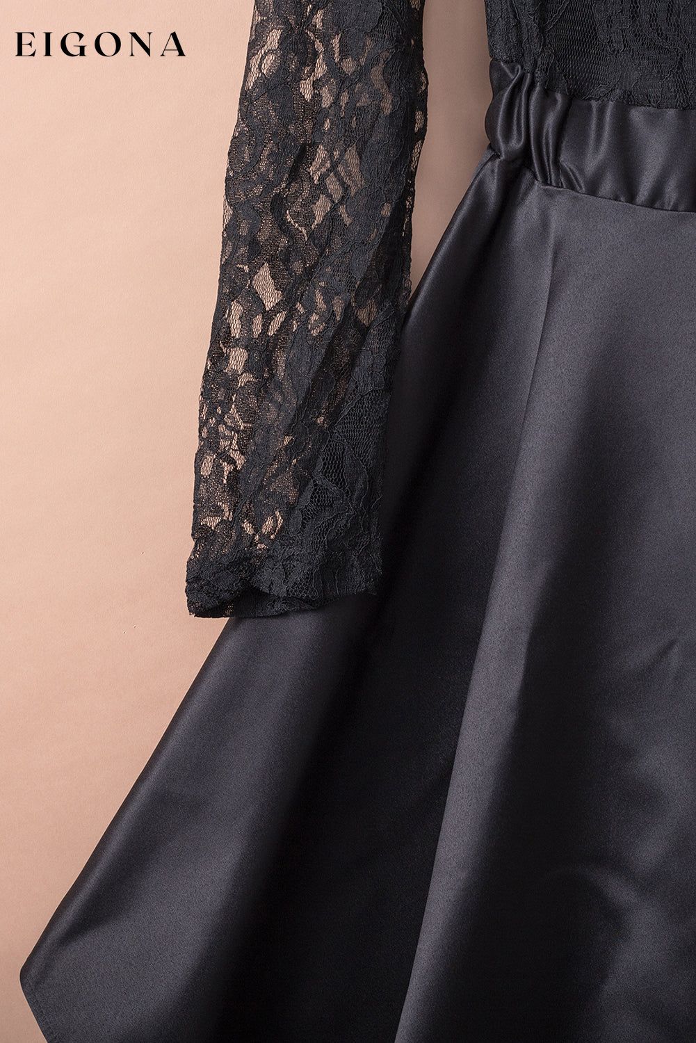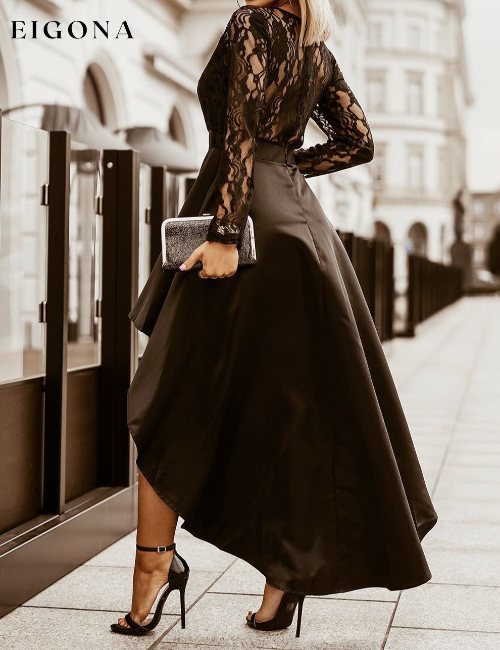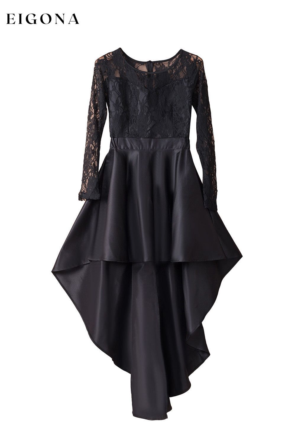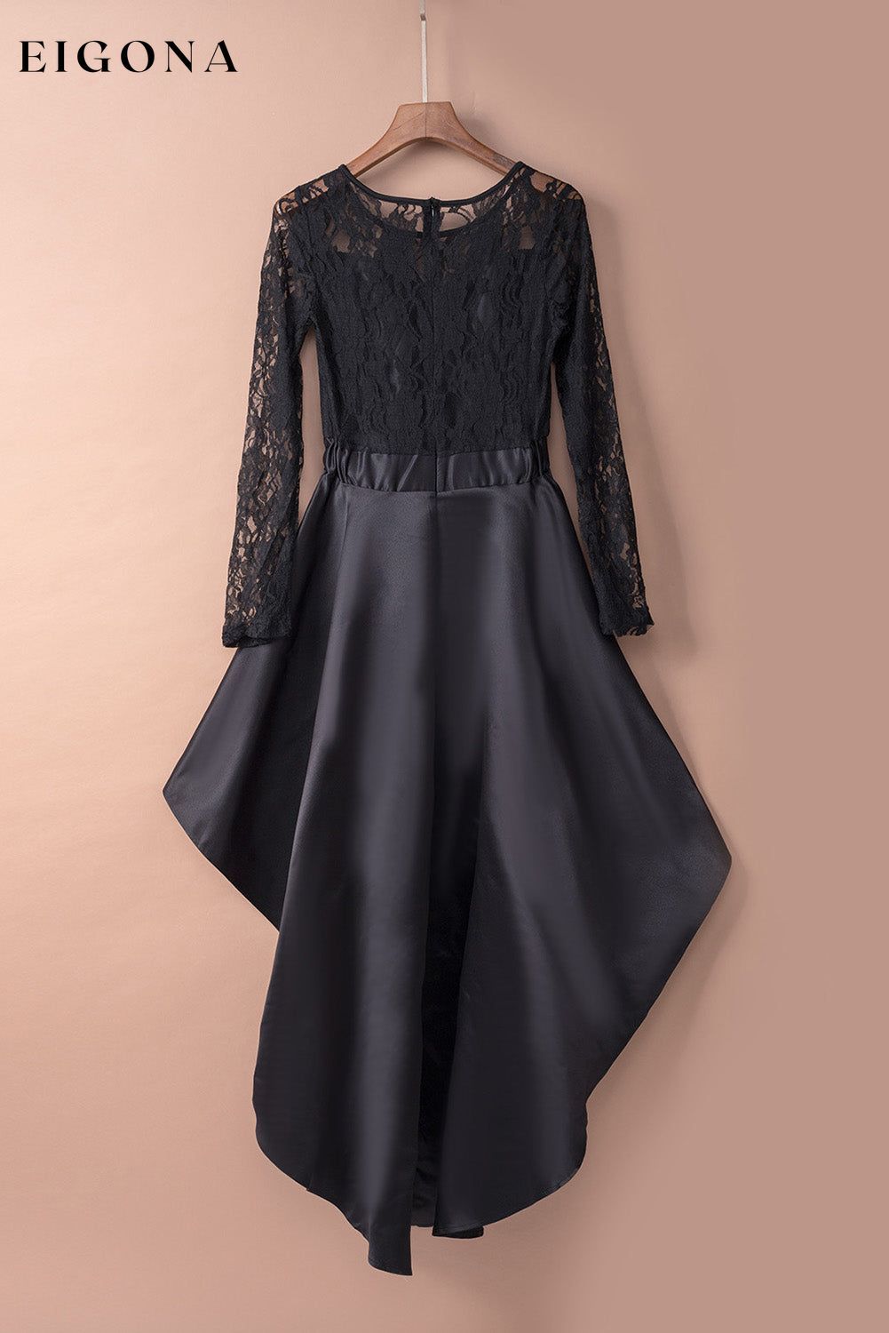 Black Long Sleeve Lace High Low Long Sleeve Satin Evening Dress
