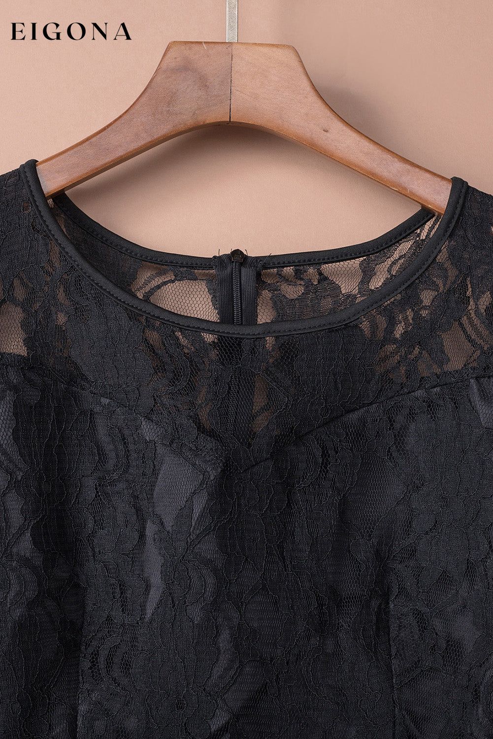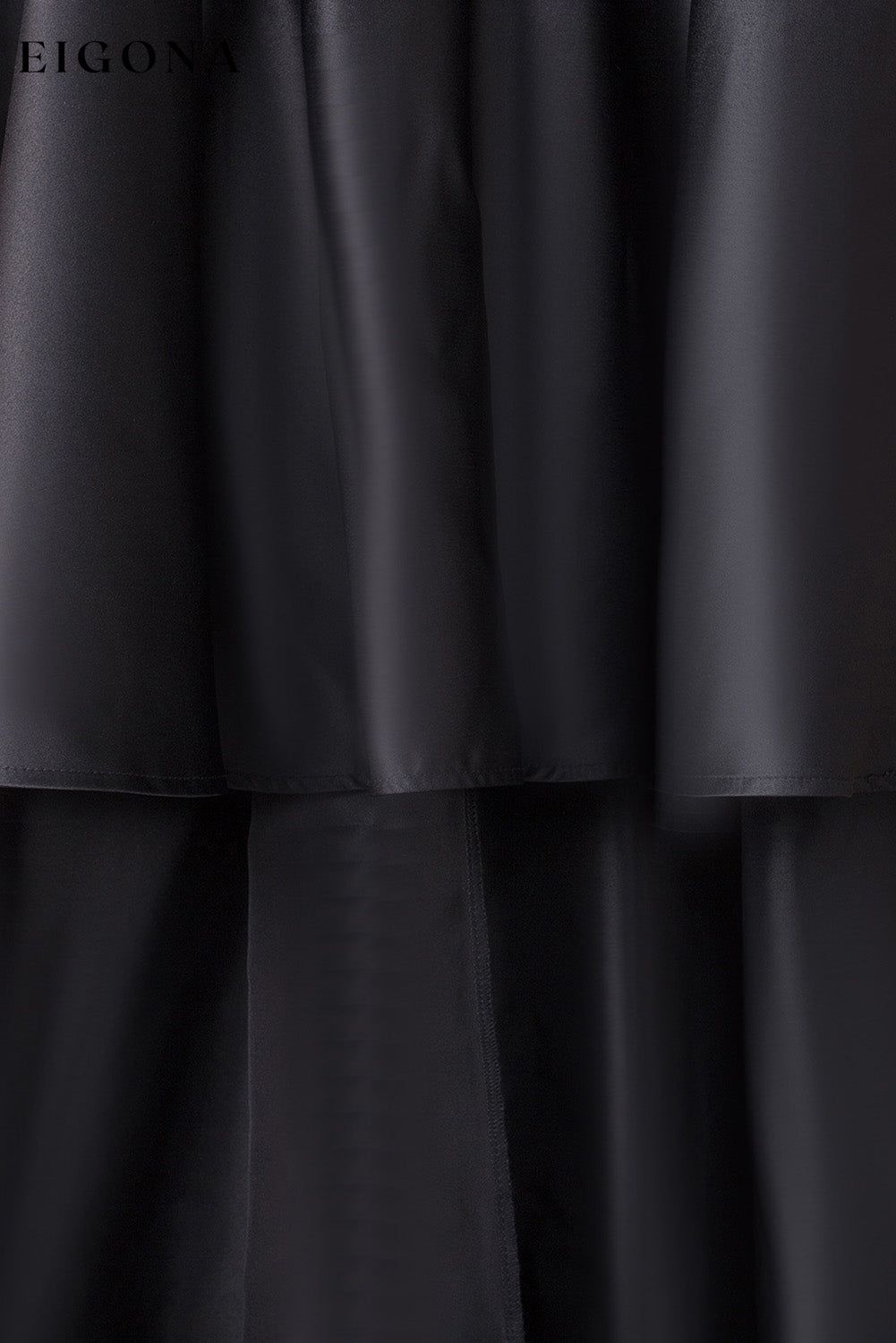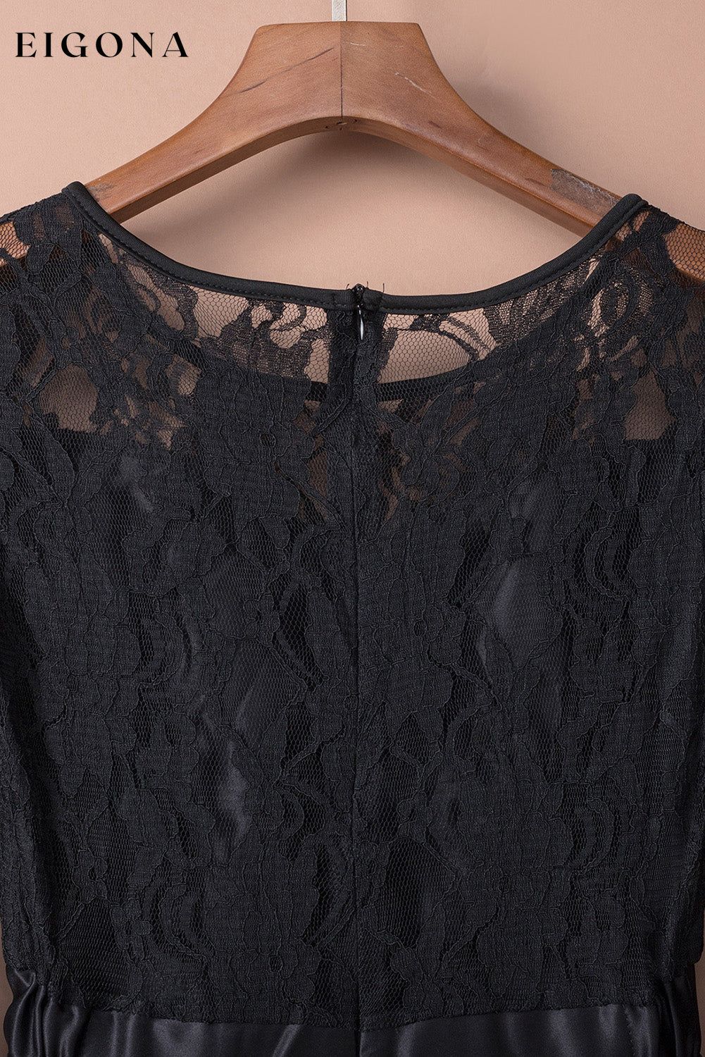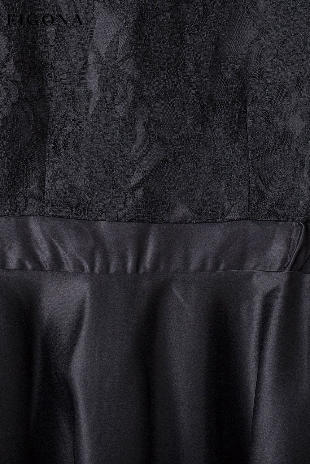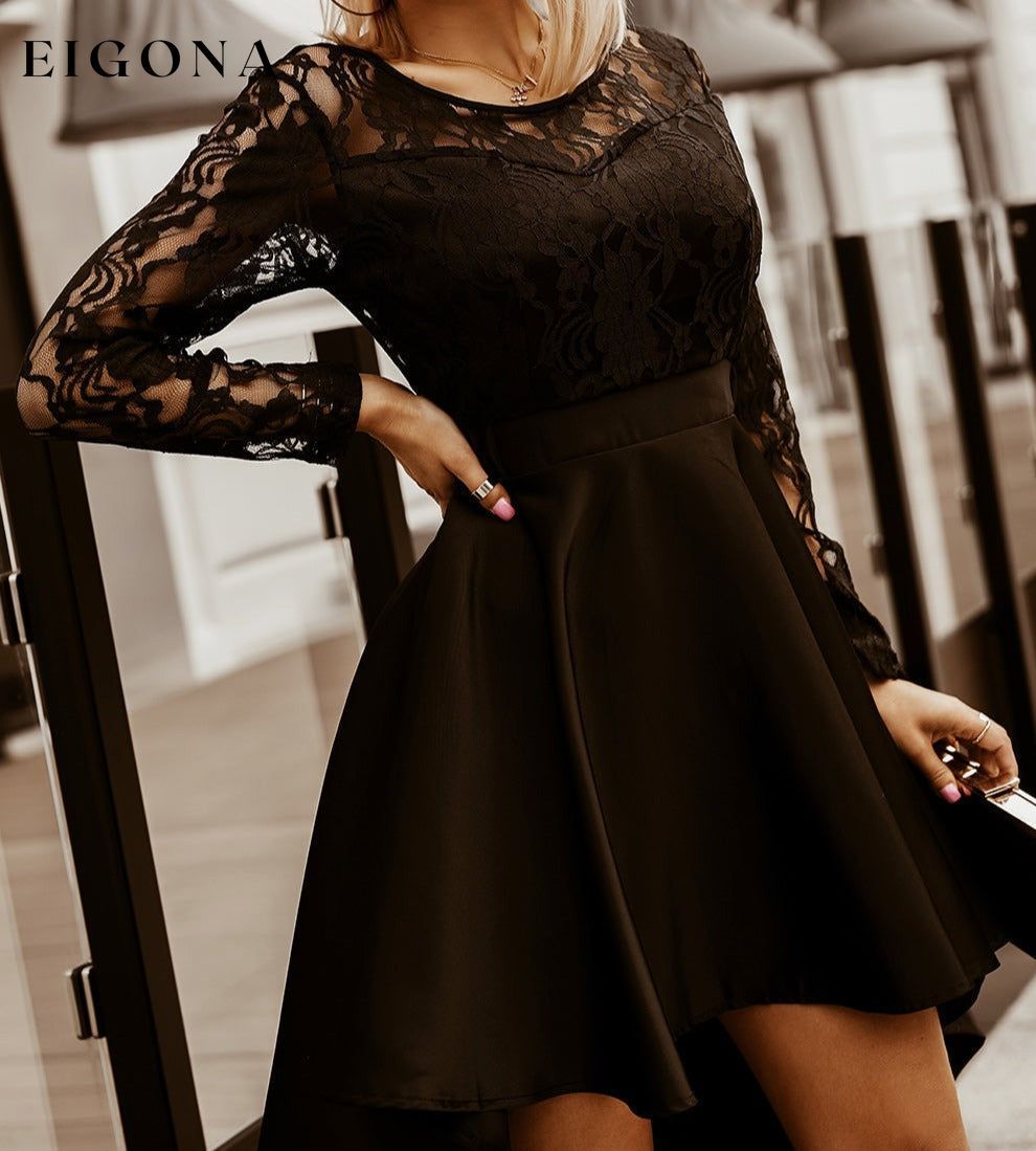 Black Long Sleeve Lace High Low Long Sleeve Satin Evening Dress