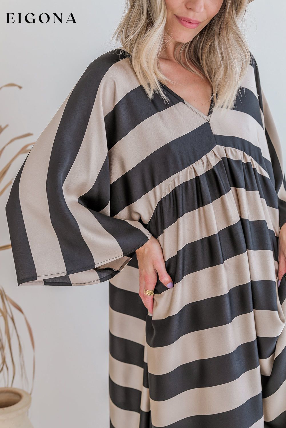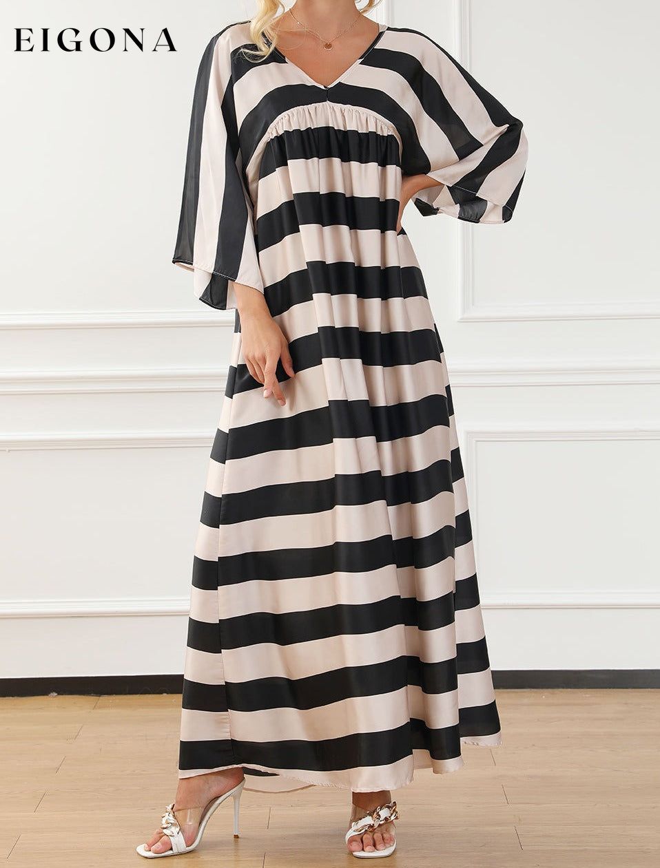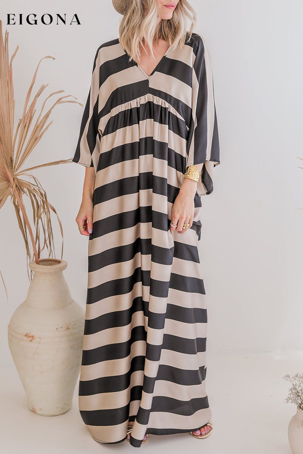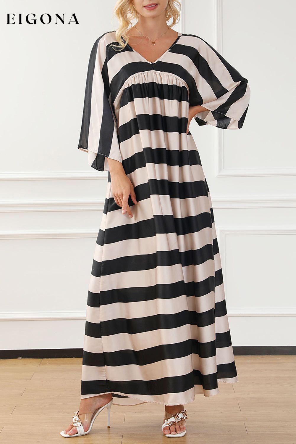 Black V Neck Kimono Sleeve Striped Maxi Dress