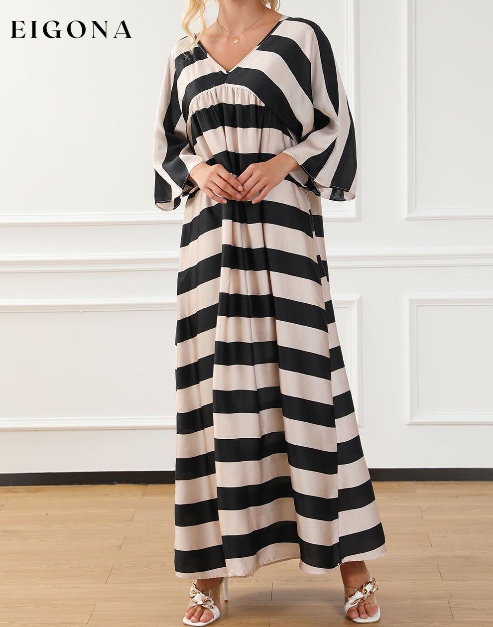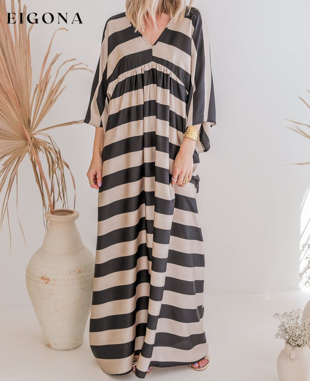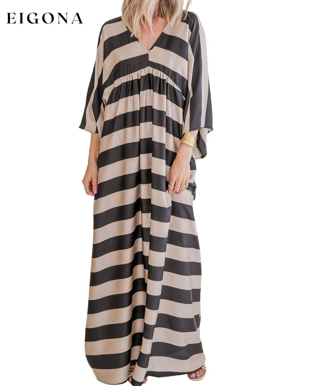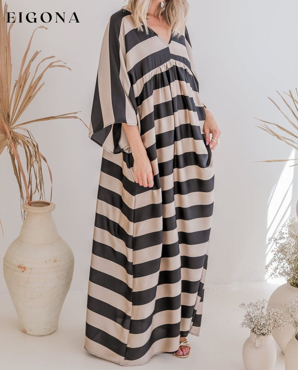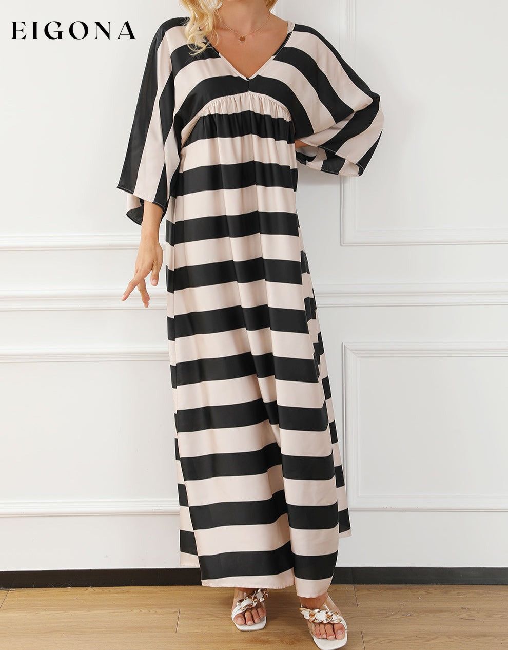 Black V Neck Kimono Sleeve Striped Maxi Dress