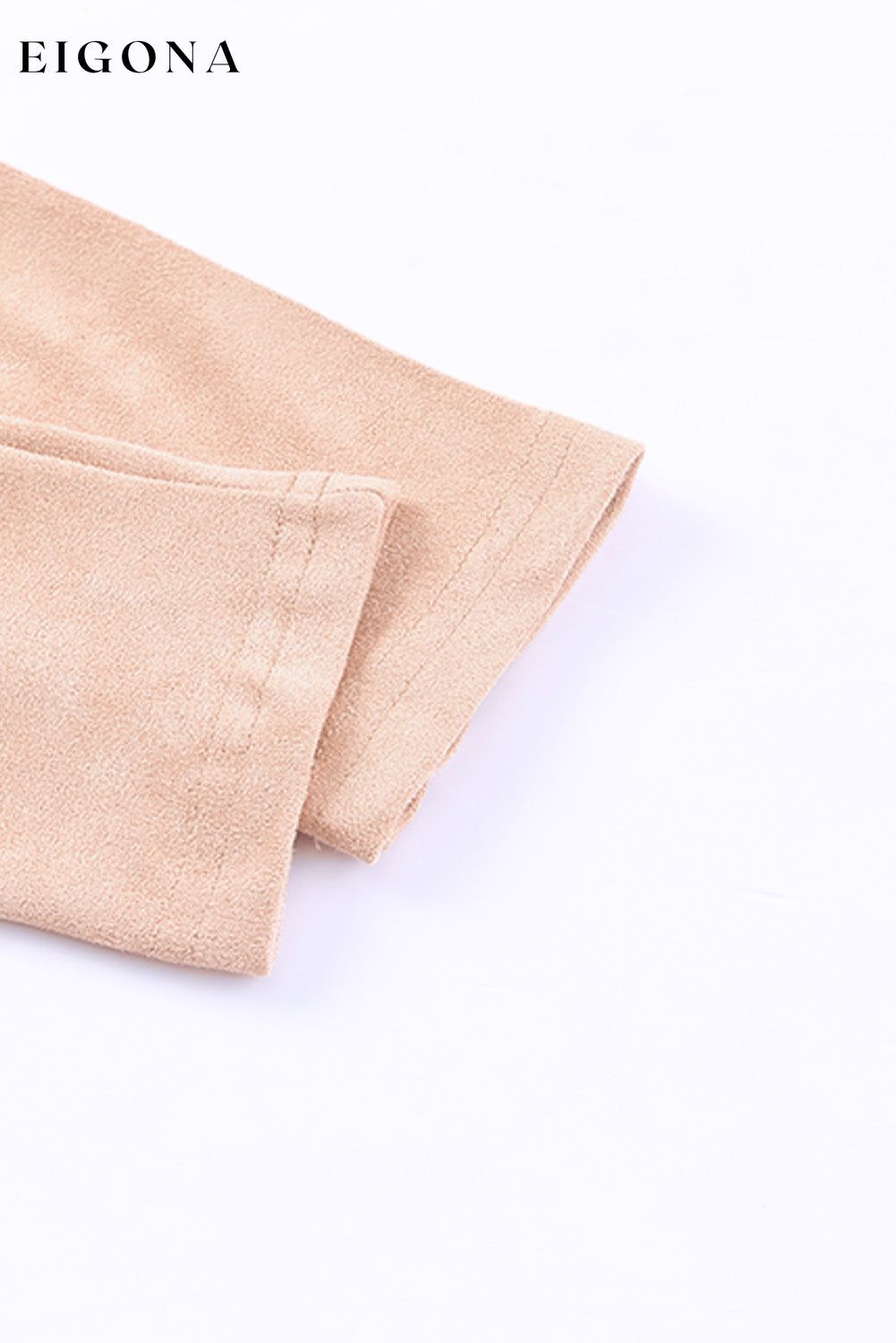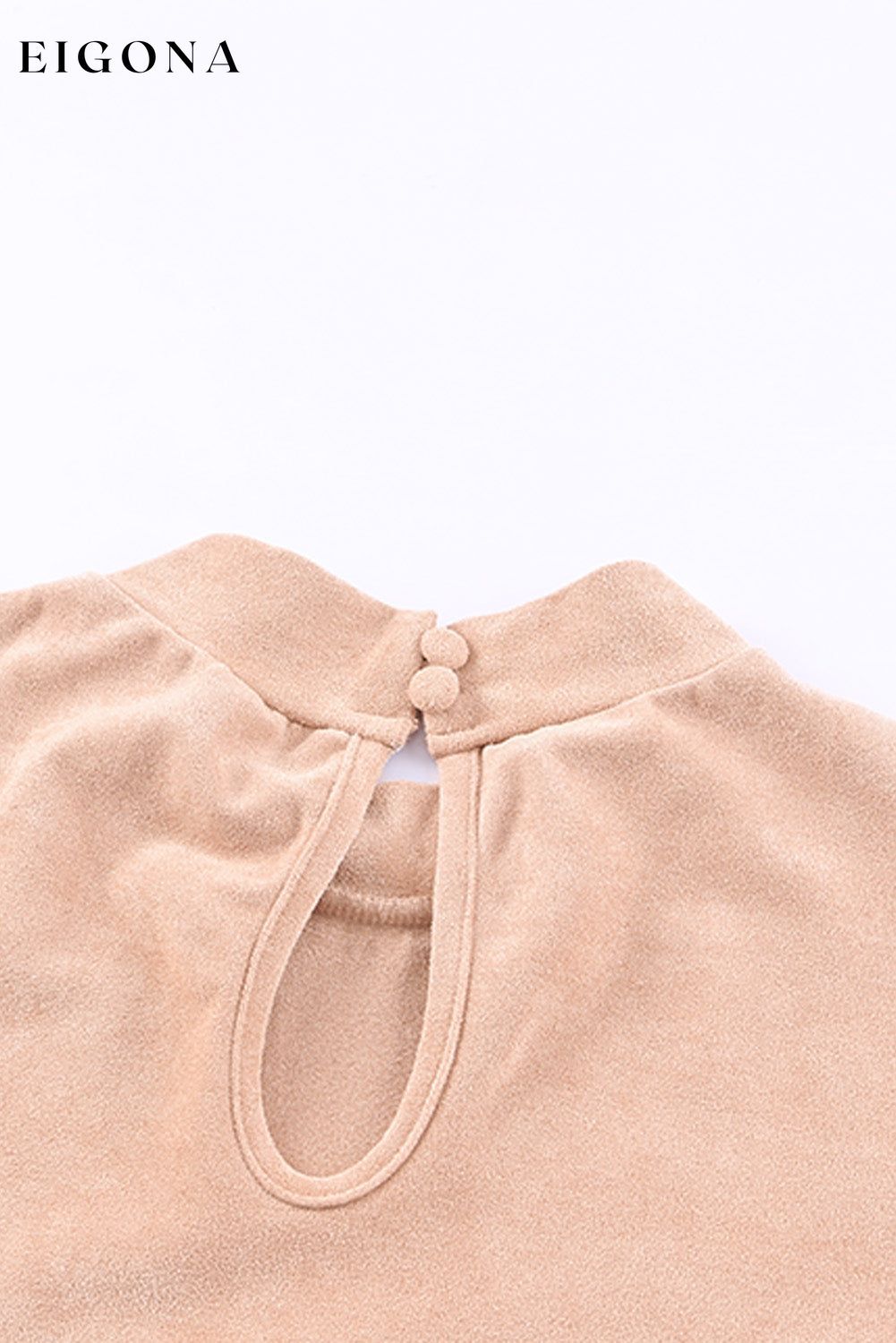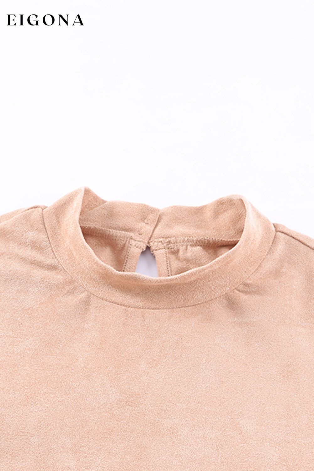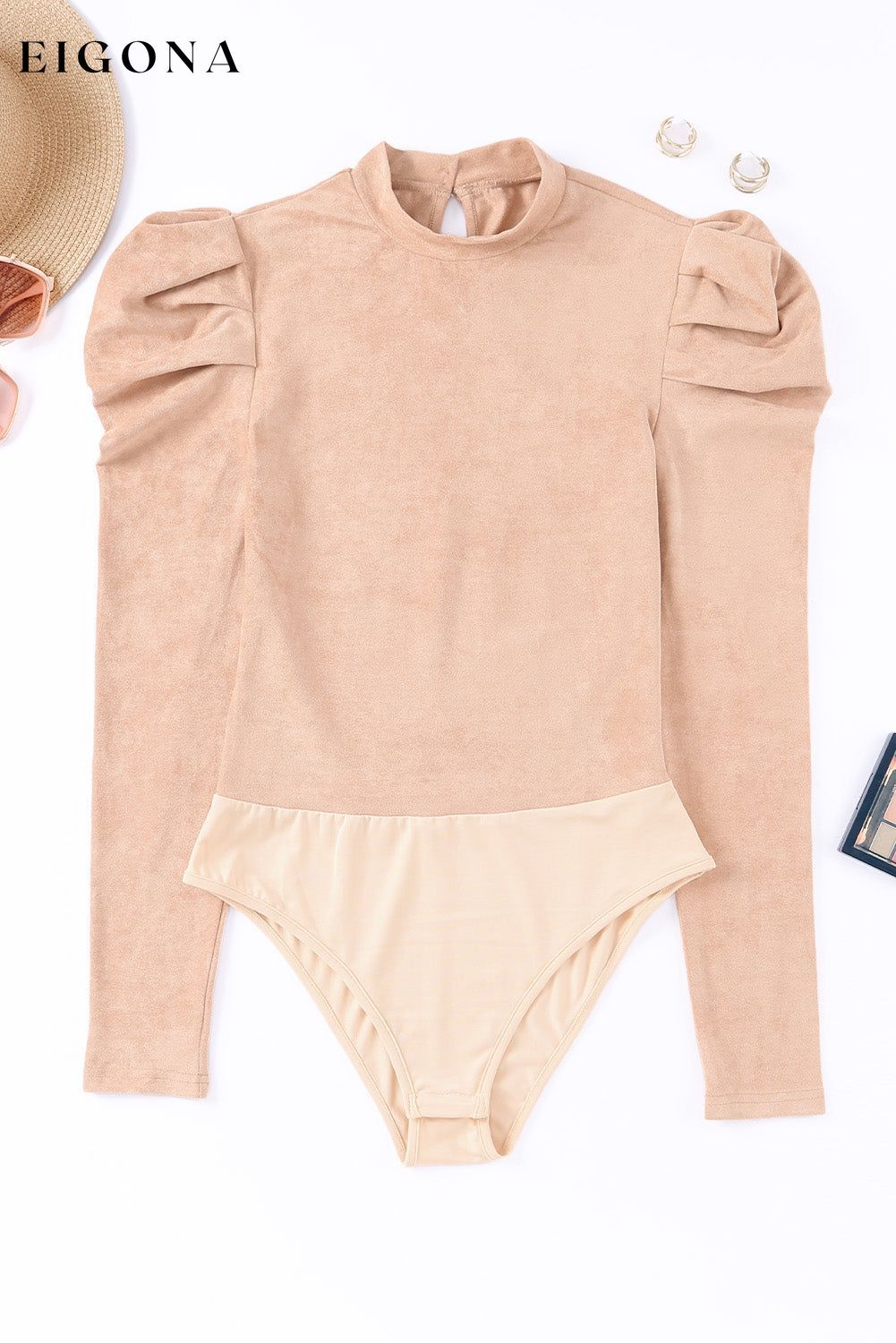 - The suede bodysuit with puff sleeves and a mock neckline is elegant