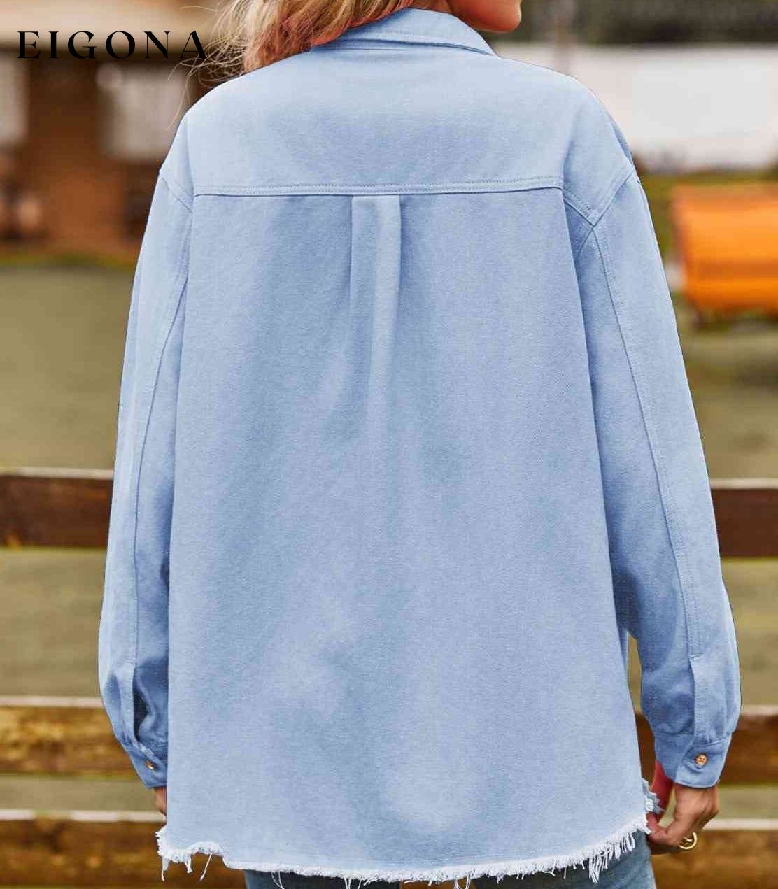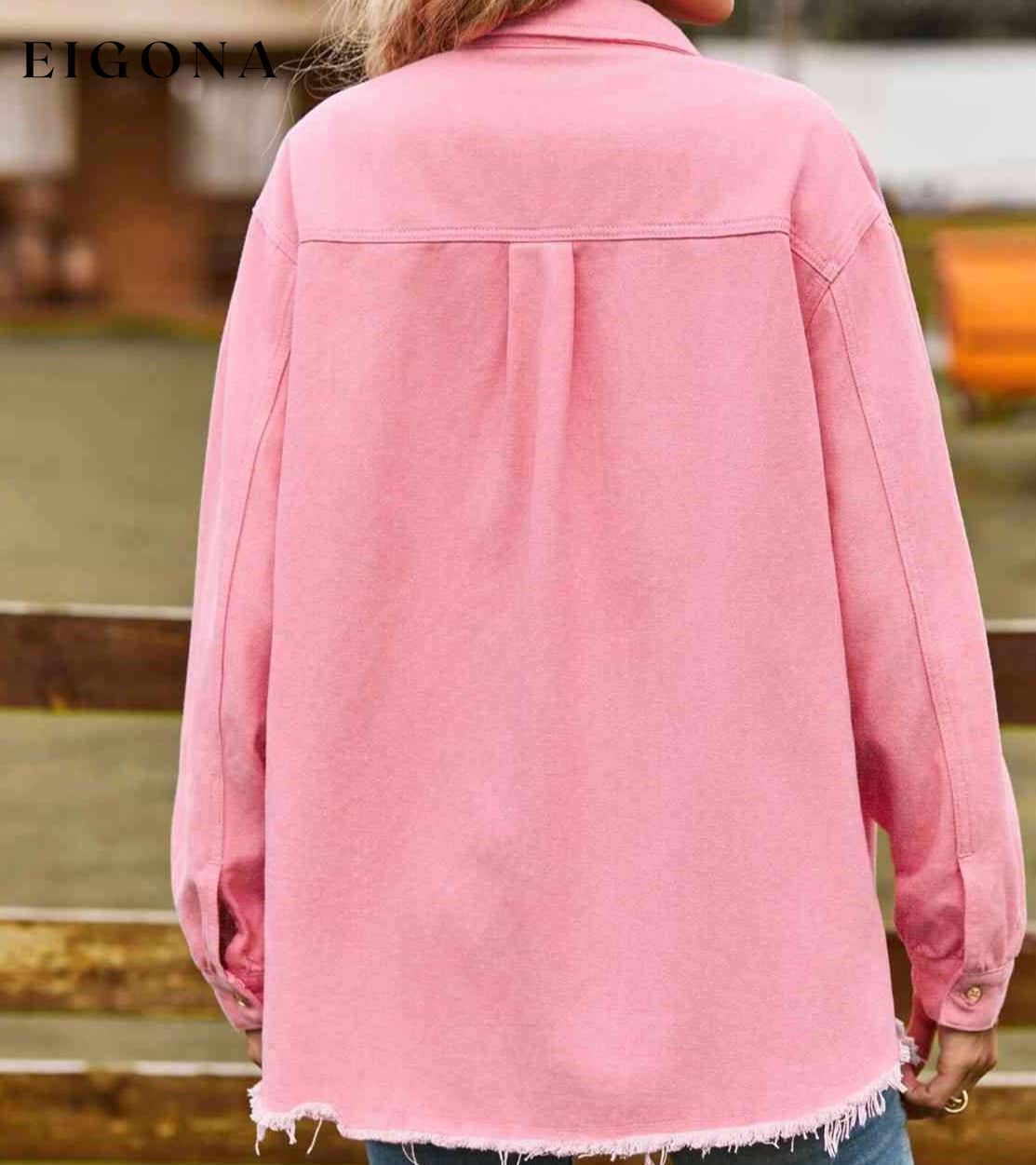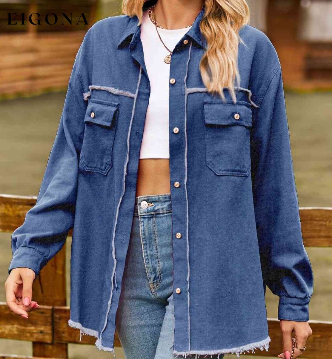 Button Up Collared Neck Raw Hem Denim Top