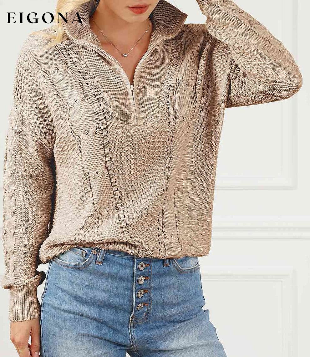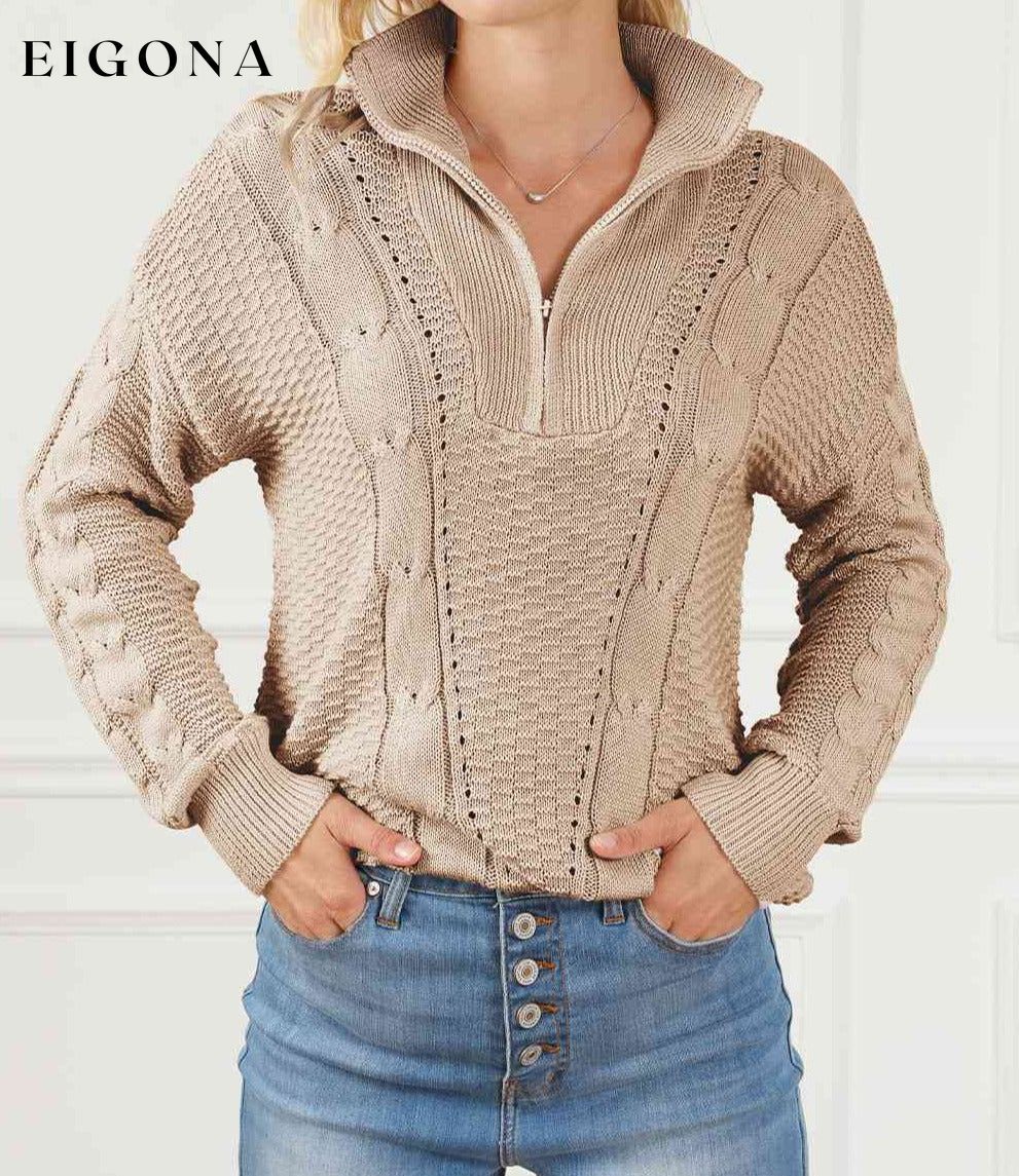 Cable-Knit Half Zip Long Sleeve Sweater
